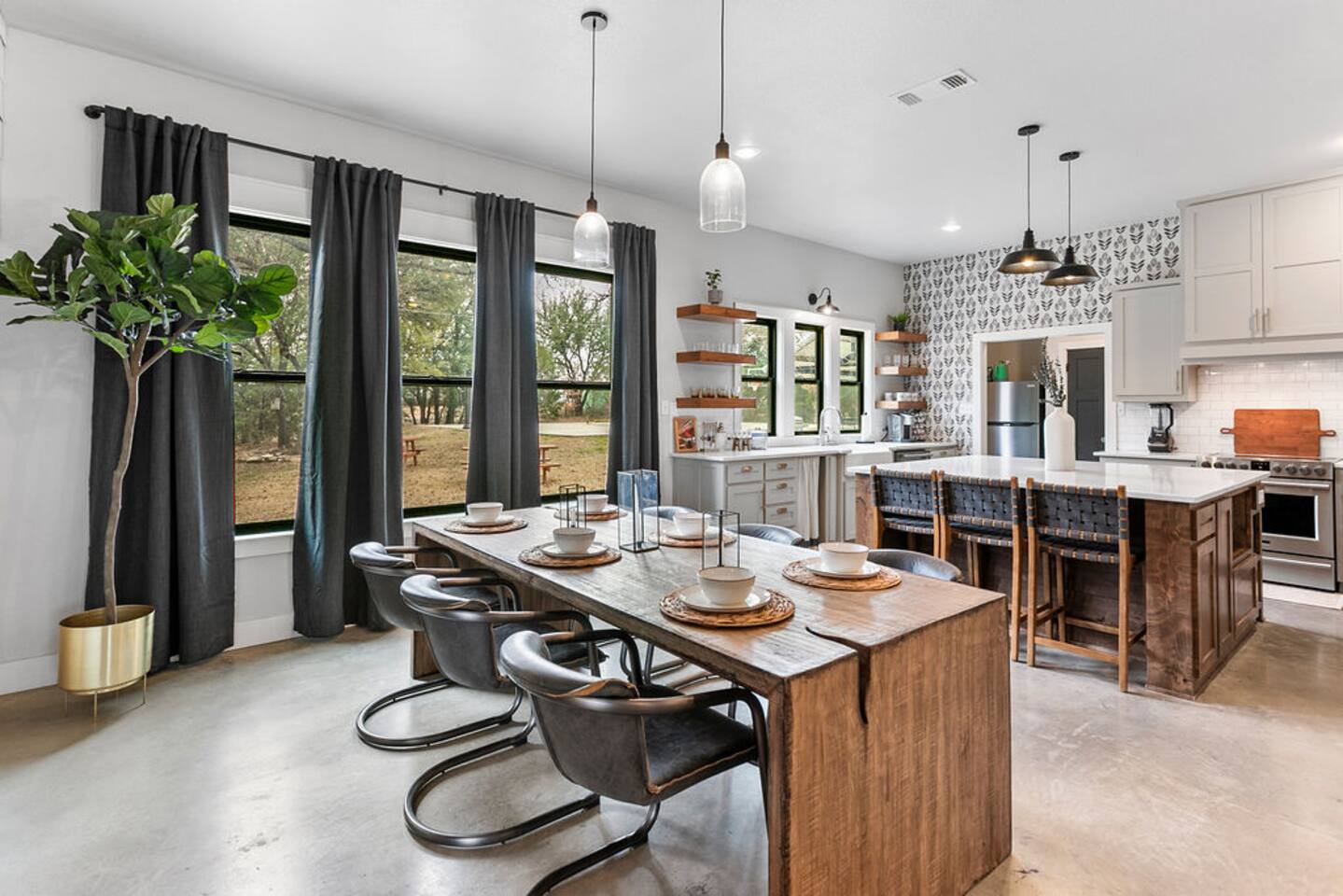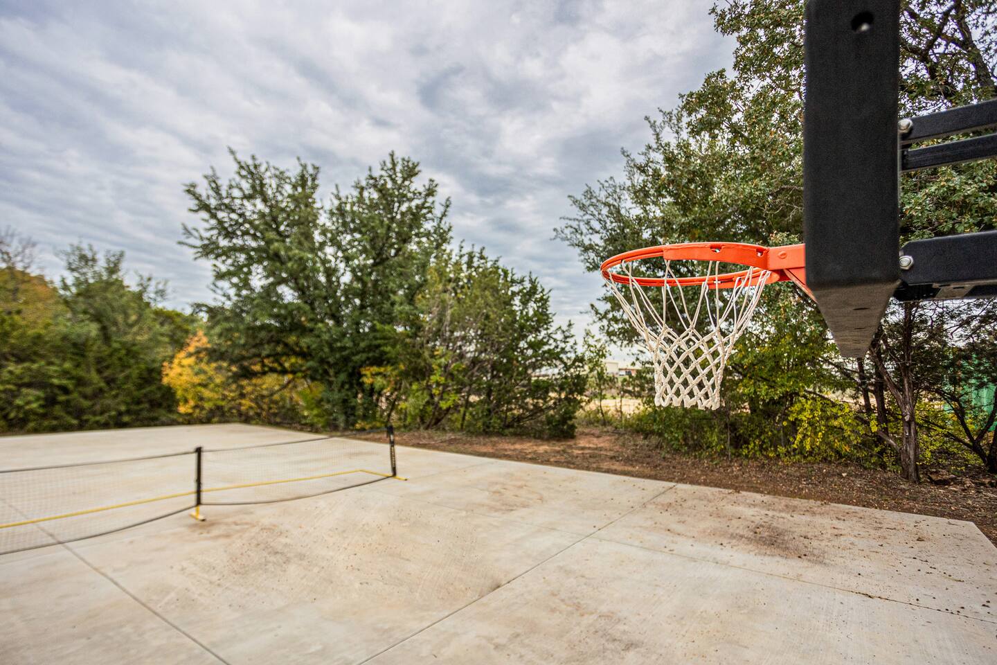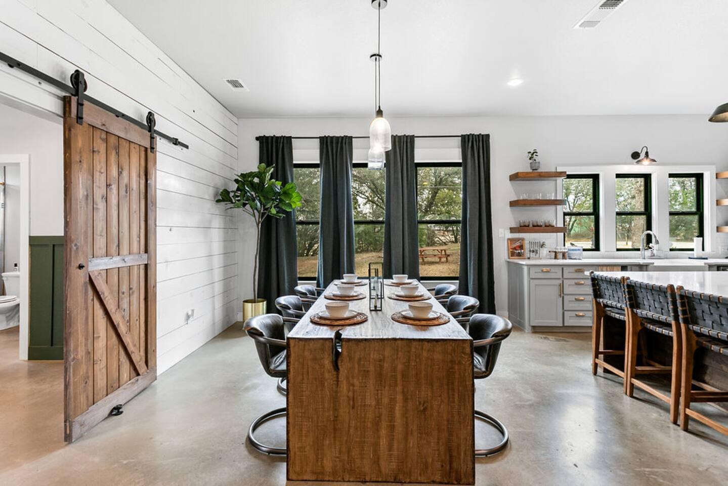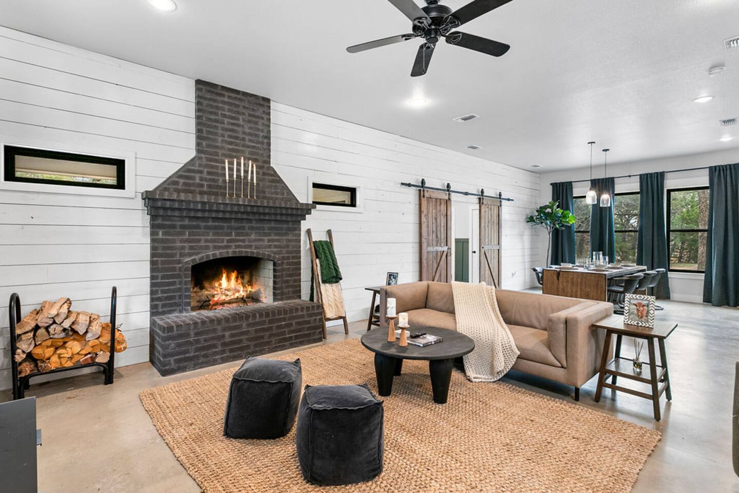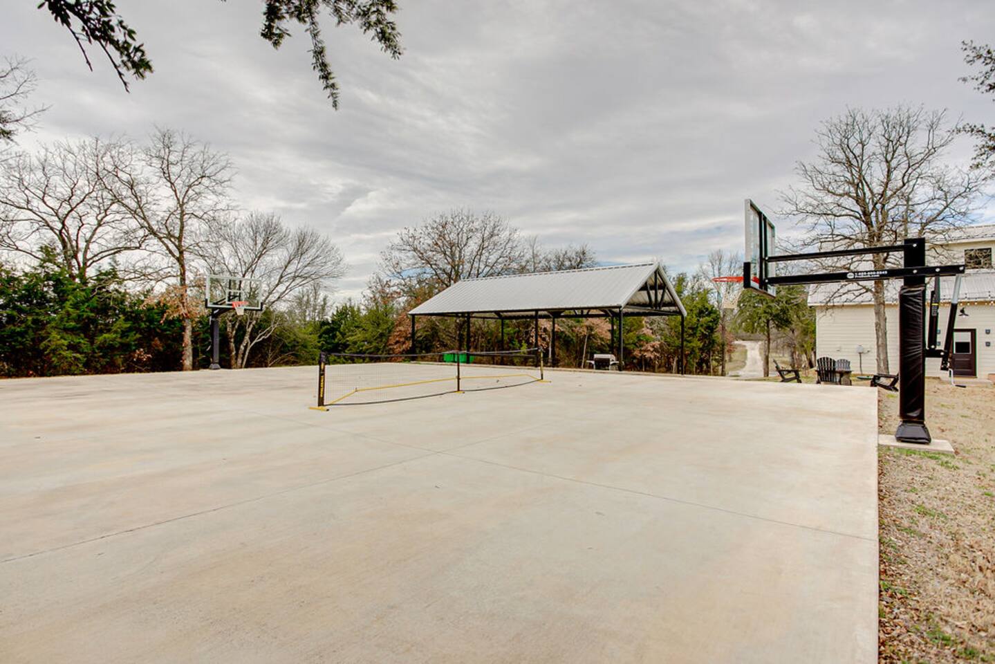 THE RANCH HOUSE: (Sleeps 13) The main ranch house is a modern open living concept and offers 4 bedrooms and 3 full bathrooms with a wrap around front porch with comfortable seating and games overlooking the pond. Kitchen: One of favorite spaces at Smoky Hill Ranch is the kitchen! The kitchen is open to the living area so large groups can enjoy being together. We spent a lot of time thinking about how to make this a comfortable and inviting space for our guests. We offer all the cooking wares and utensils you could need to prepare and serve a delicious meal for all of your guests: pots & pans, dinner service for 19 guests (plates, bowls, silverware, and kitchen basics). Living Area: The living area of the main ranch house is the perfect place for families and friends to relax and unwind. While cozying up on the sofa, you have the most amazing views of the wood burning fireplace and wrap around front porch that look out onto the pond. You can pull out a board game or turn your attention to the large 75 inch Smart TV with Youtube TV provided, or login to your own streaming services and pick up right where you left off on your favorite shows. Bedroom 1- The downstairs primary bedroom offers a king size bed, flat screen TV, office nook with wireless printer, large walk in closet, and an en suite bathroom with a soaking tub and walk in shower. Bedroom 2- The downstairs second bedroom offers a queen size bed, direct access to the wrap around porch, and a full en suite bathroom. Bedroom 3- The second upstairs bedroom offers two queen beds, flat screen TV, and a twin bed looking out towards the pond. Bedroom 4- The upstairs family room offers a queen bed, two twin beds, flat screen TV, and a Nintendo Switch for guests entertainment. THE BUNK HOUSE: (Sleeps 6) The bunk house offers two sets of bunk beds(full size bed on the bottoms and twin on top), kitchenette with full size refrigerator, 65 inch TV with streaming services and Youtube TV provided, beverage bar, washer/dryer, en suite bathroom with a walk in shower, and views looking out to the pond of Smoky Hill Ranch. OUTDOORS: The outdoor area of Smoky Hill Ranch is our favorite part for many reasons! Smoky Hill Ranch offers access to full size sport court with in ground adjustable basketball hoops, two separate fire pits to gather around, 24x36 covered pavilion, outdoor games including corn hole, oversized jenga, four across, a stocked pond for fishing, and outdoor dining tables. In the evenings or early morning you can sit outside and enjoy the peaceful, relaxing views of wildlife, take a hike or bike though miles of trails at the Acton Nature Center located less than a mile away (.5 miles). EVENTS: ALL EVENTS MUST BE APPROVED BY THE HOST BEFORE BOOKING.We're very willing to accommodate events or other requests such as fundraisers, baby showers, gender reveals, rehearsal dinners, birthday parties, etc. All events will be priced in addition to the nightly rate. Please reach out to the host for additional information on hosting events at Smoky Hill Ranch. The maximum number of guests allowed at the house is 19 unless otherwise approved. If you are looking to book any event for more than 19 people, please contact us for more information about pricing. AROUND SMOKY HILL: . A mile down the road, you'll find Acton Nature Center where you can take a hike or bike through miles of trails. We are very close to all the attractions that Granbury has to offer as well, only .9 miles from Revolver Brewing with events every Saturday, 5 miles from public boat ramps to play on Lake Granbury, 8 miles from Historic Granbury Square with dining/shopping/wineries, and 1 mile from FCS Paintball. Don't worry, you'll have a digital guidebook with all the details at your fingertips when you stay with us. We'll make sure of that so you won't miss out on anything Granbury has to offer! GENERAL: Free WiFi, Board Games ,Bluetooth Speaker, Poker Set, Flat Screen TV's with streaming service capabilities, Youtube TV, luxury white linens/towels, complimentary toiletries, trash bags, paper towels, hair dryer, iron/board,2 full washer/dryer central heating & A/C, high-chair, Pack N’ Play CLEANLINESS: We employ a local, high-level, professional cleaning team who understands the cleanliness standards we have set for our property. Together, we make certain our guests are able to settle in and feel confident in a sparkling clean home away from home. PARKING: There is two long gravel driveways leading both to The Ranch House and The Bunk House. You can park anywhere on both driveways, under the covered pavilion/carport, or for excess/overflow parking you may park on the acreage to the West of the property. NO STREET PARKING. SECURITY SYSTEM: We utilize a Ring doorbell and Ring Security Cameras for the safety of guests and Smoky Hill Ranch. The cameras are located on the outside corners of both homes and they will not be monitored, aside from check-in, during your stay unless an issue arises. Covering or disabling either of these devices, in any way, is strictly prohibited and will result in being removed from the property without a refund.