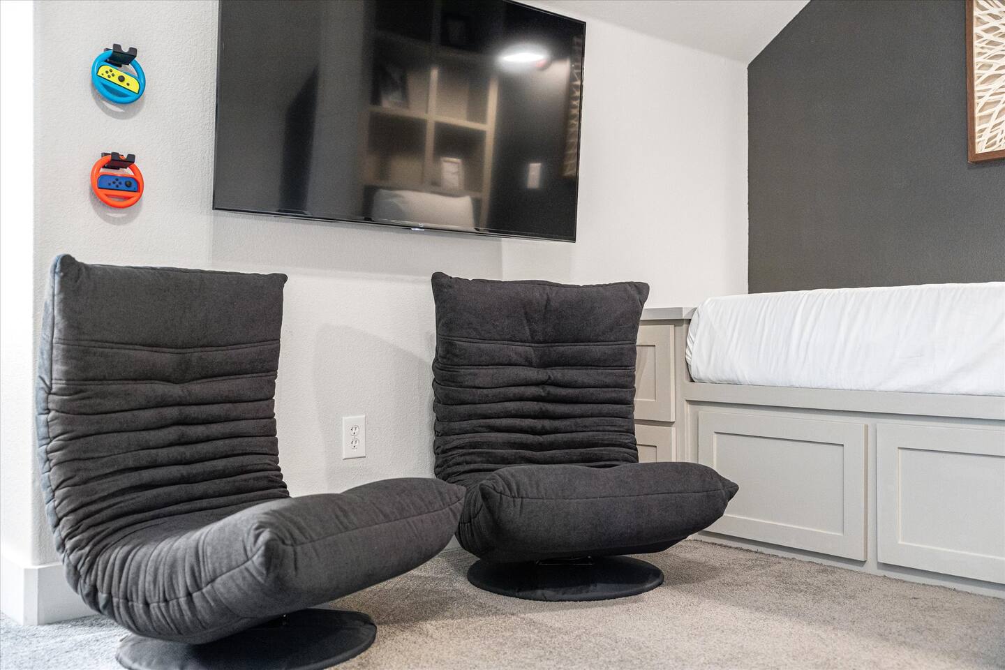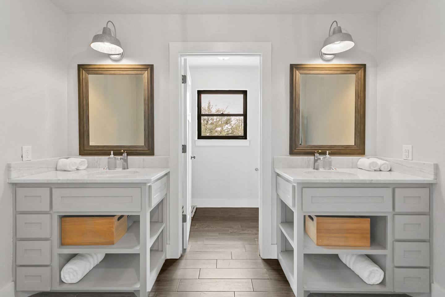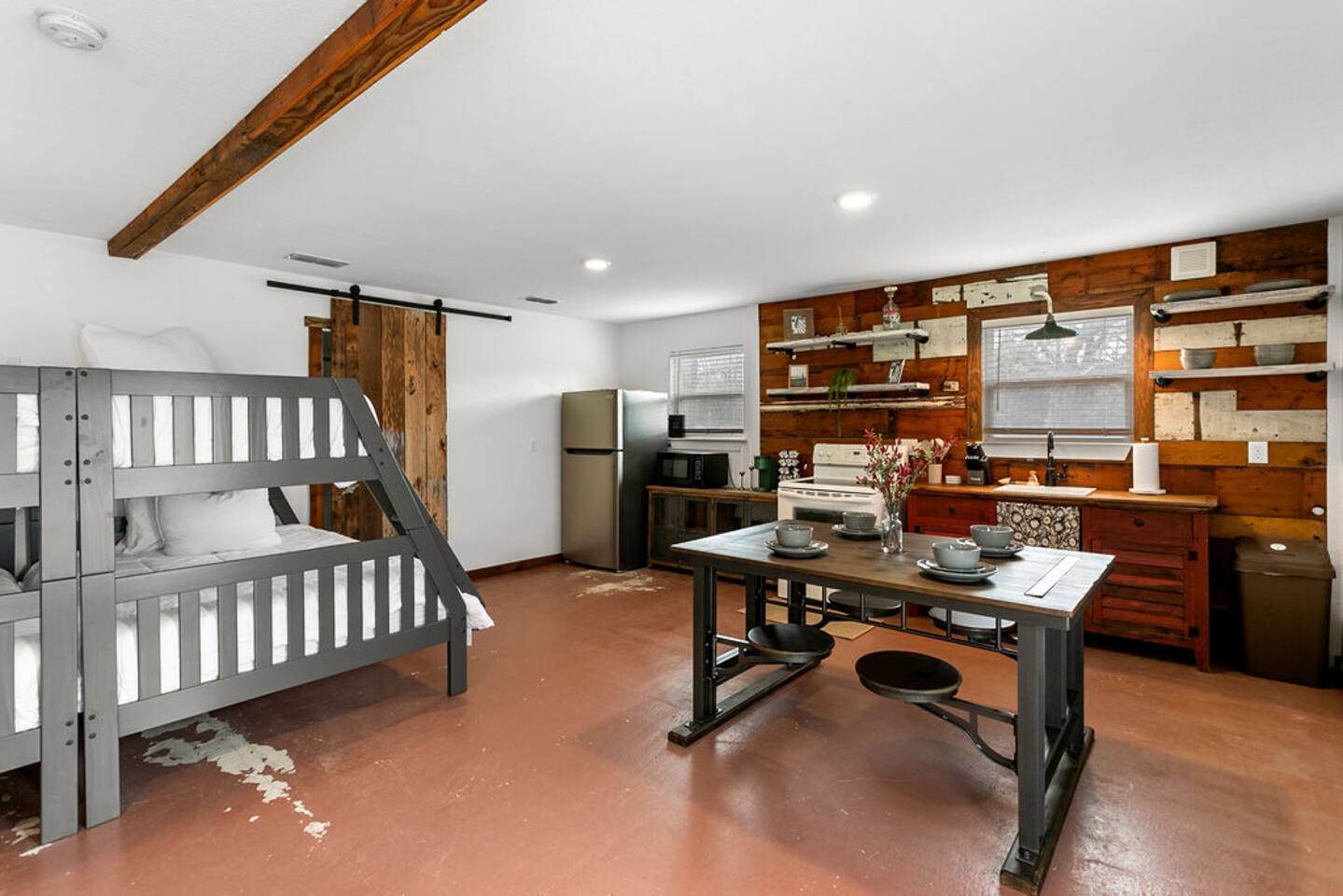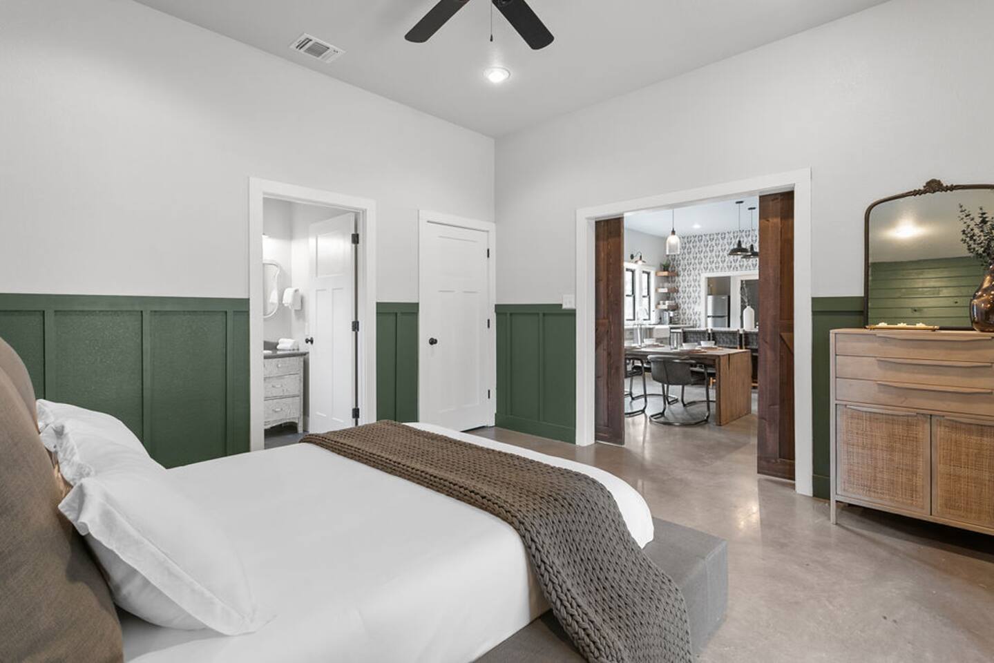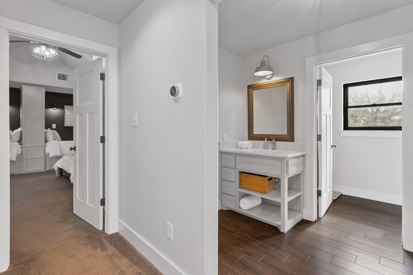 THE RANCH HOUSE: (Sleeps 13) The main ranch house is a modern open living concept and offers 4 bedrooms and 3 full bathrooms with a wrap around front porch with comfortable seating and games overlooking the pond. Kitchen: One of favorite spaces at Smoky Hill Ranch is the kitchen! The kitchen is open to the living area so large groups can enjoy being together. We spent a lot of time thinking about how to make this a comfortable and inviting space for our guests. We offer all the cooking wares and utensils you could need to prepare and serve a delicious meal for all of your guests: pots & pans, dinner service for 19 guests (plates, bowls, silverware, and kitchen basics). Living Area: The living area of the main ranch house is the perfect place for families and friends to relax and unwind. While cozying up on the sofa, you have the most amazing views of the wood burning fireplace and wrap around front porch that look out onto the pond. You can pull out a board game or turn your attention to the large 75 inch Smart TV with Youtube TV provided, or login to your own streaming services and pick up right where you left off on your favorite shows. Bedroom 1- The downstairs primary bedroom offers a king size bed, flat screen TV, office nook with wireless printer, large walk in closet, and an en suite bathroom with a soaking tub and walk in shower. Bedroom 2- The downstairs second bedroom offers a queen size bed, direct access to the wrap around porch, and a full en suite bathroom. Bedroom 3- The second upstairs bedroom offers two queen beds, flat screen TV, and a twin bed looking out towards the pond. Bedroom 4- The upstairs family room offers a queen bed, two twin beds, flat screen TV, and a Nintendo Switch for guests entertainment. THE BUNK HOUSE: (Sleeps 6) The bunk house offers two sets of bunk beds(full size bed on the bottoms and twin on top), kitchenette with full size refrigerator, 65 inch TV with streaming services and Youtube TV provided, beverage bar, washer/dryer, en suite bathroom with a walk in shower, and views looking out to the pond of Smoky Hill Ranch. OUTDOORS: The outdoor area of Smoky Hill Ranch is our favorite part for many reasons! Smoky Hill Ranch offers access to full size sport court with in ground adjustable basketball hoops, two separate fire pits to gather around, 24x36 covered pavilion, outdoor games including corn hole, oversized jenga, four across, a stocked pond for fishing, and outdoor dining tables. In the evenings or early morning you can sit outside and enjoy the peaceful, relaxing views of wildlife, take a hike or bike though miles of trails at the Acton Nature Center located less than a mile away (.5 miles). EVENTS: ALL EVENTS MUST BE APPROVED BY THE HOST BEFORE BOOKING.We're very willing to accommodate events or other requests such as fundraisers, baby showers, gender reveals, rehearsal dinners, birthday parties, etc. All events will be priced in addition to the nightly rate. Please reach out to the host for additional information on hosting events at Smoky Hill Ranch. The maximum number of guests allowed at the house is 19 unless otherwise approved. If you are looking to book any event for more than 19 people, please contact us for more information about pricing. AROUND SMOKY HILL: . A mile down the road, you'll find Acton Nature Center where you can take a hike or bike through miles of trails. We are very close to all the attractions that Granbury has to offer as well, only .9 miles from Revolver Brewing with events every Saturday, 5 miles from public boat ramps to play on Lake Granbury, 8 miles from Historic Granbury Square with dining/shopping/wineries, and 1 mile from FCS Paintball. Don't worry, you'll have a digital guidebook with all the details at your fingertips when you stay with us. We'll make sure of that so you won't miss out on anything Granbury has to offer! GENERAL: Free WiFi, Board Games ,Bluetooth Speaker, Poker Set, Flat Screen TV's with streaming service capabilities, Youtube TV, luxury white linens/towels, complimentary toiletries, trash bags, paper towels, hair dryer, iron/board,2 full washer/dryer central heating & A/C, high-chair, Pack N’ Play CLEANLINESS: We employ a local, high-level, professional cleaning team who understands the cleanliness standards we have set for our property. Together, we make certain our guests are able to settle in and feel confident in a sparkling clean home away from home. PARKING: There is two long gravel driveways leading both to The Ranch House and The Bunk House. You can park anywhere on both driveways, under the covered pavilion/carport, or for excess/overflow parking you may park on the acreage to the West of the property. NO STREET PARKING. SECURITY SYSTEM: We utilize a Ring doorbell and Ring Security Cameras for the safety of guests and Smoky Hill Ranch. The cameras are located on the outside corners of both homes and they will not be monitored, aside from check-in, during your stay unless an issue arises. Covering or disabling either of these devices, in any way, is strictly prohibited and will result in being removed from the property without a refund.